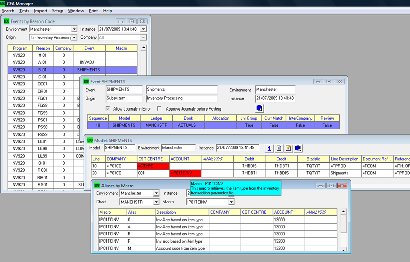 CEA Manager shows the direct link between the sub-system transaction reason code and the logic used to post the transaction into CEA.