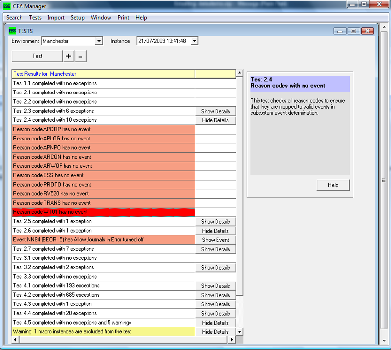 CEA Manager also includes a pre-defined set of Integrity tests to enable you to validate your CEA set-up, identify potential issues and act before they cause a posting error.